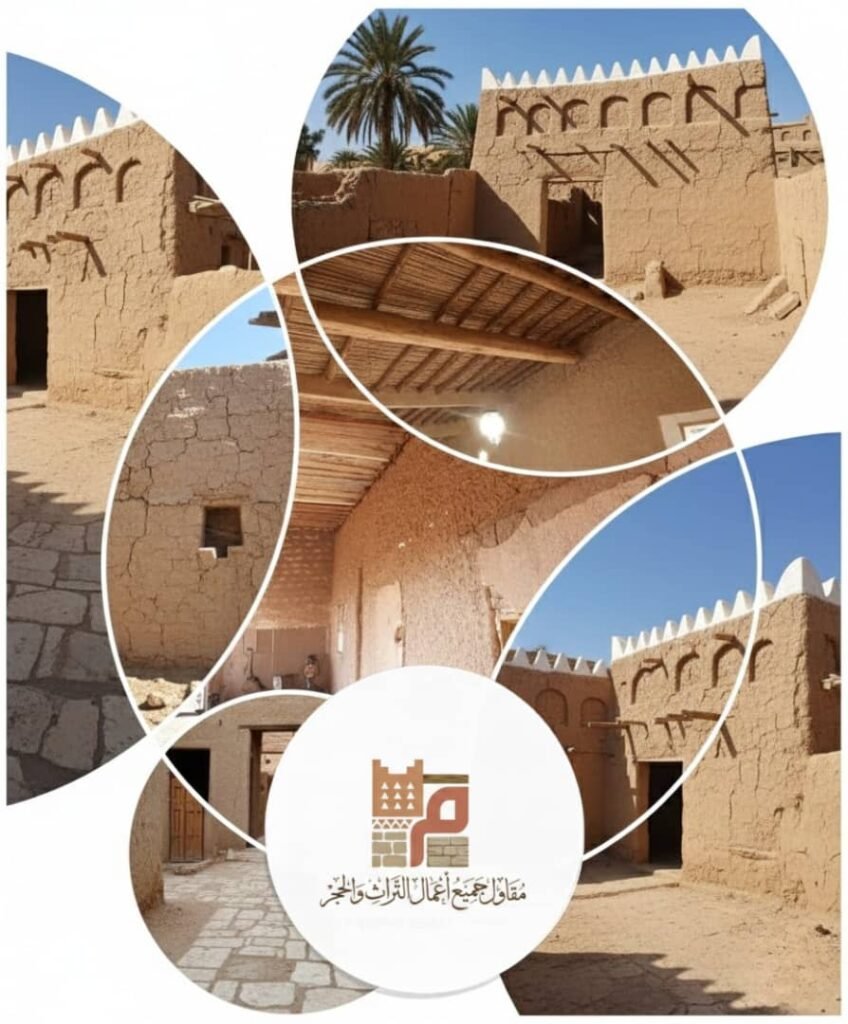 نختص في بناء وترميم البيوت التراثية من الأساس، وتنفيذ المجالس، المساجد، الاستراحات، المطاعم التراثية، وأبراج الحمام، باستخدام أساليب البناء التقليدية والمواد الأصيلة مثل الحجر وخشب الأثل والجريد. كما ننفّذ تلييس الطين مع عوازل تحمي من الأمطار، وجميع أعمال الحجر والمشيات والأسوار، بخبرة تمتد لخدمة المشاريع التراثية في جميع أنحاء المملكة العربية السعودية.